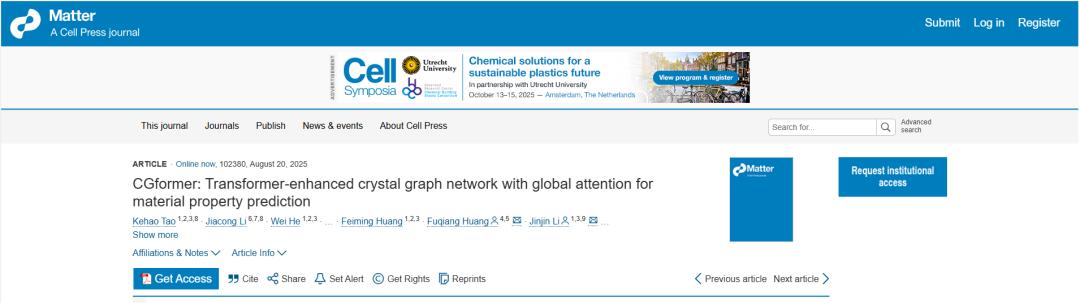 该方法提供了更全面的结构信息,有助于更准确地预测结构内部离子迁移行为,为新材料尤其是高熵、复杂结构晶体材料的研发提供了可靠工具。研究成果以「CGformer: Transformer-enhanced crystal graph network with global attention for material property prediction」为题,发布于顶级期刊 Matter。