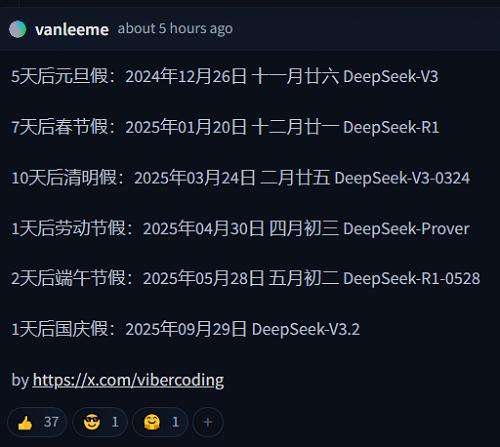 还有网友列出了DeepSeek每次更新模型的时间,几乎都卡在节假日的前几天。