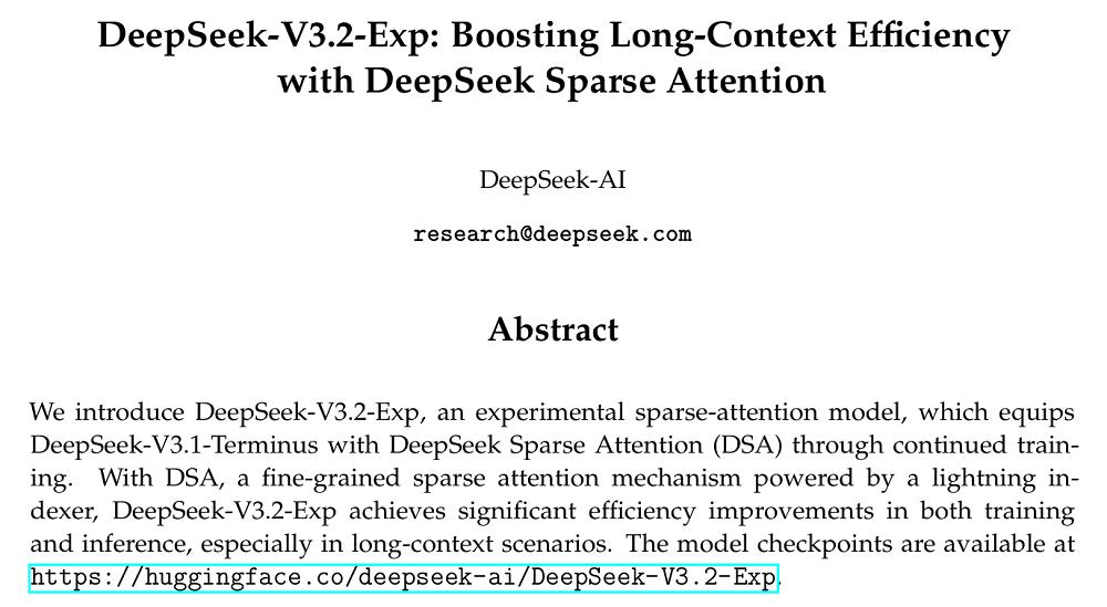 https://huggingface.co/deepseek-ai/DeepSeek-V3.2-Exp