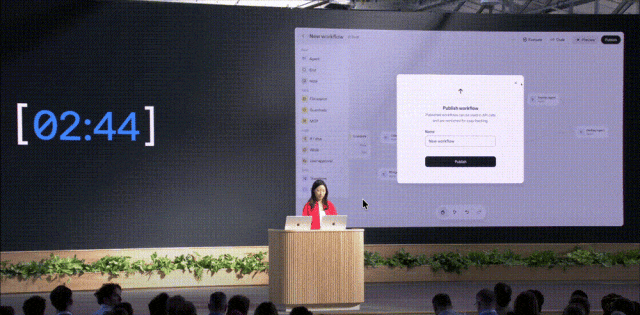 正如爆料所言,AgentBuilder让智能体构建变得像搭积木一样简单直观。现场,仅用8分钟拖拽,便一键完成了完整Agent的搭建。