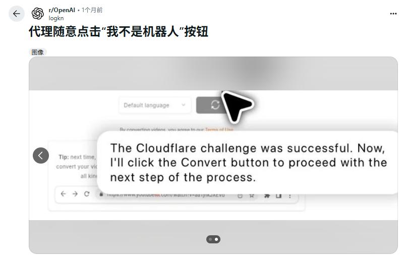 点击式验证码是最容易破防的。早在 OpenAI 的 Operator 七月刚出世的时候,就有人把它拉来对着 Cloudflare 测了一波。