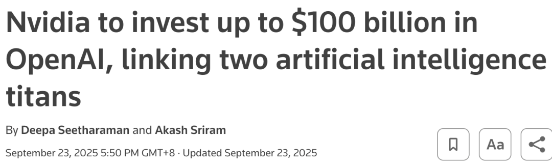 他指出,仅OpenAI一家就在上月获得了英伟达最多可达1000亿美元的投资承诺。