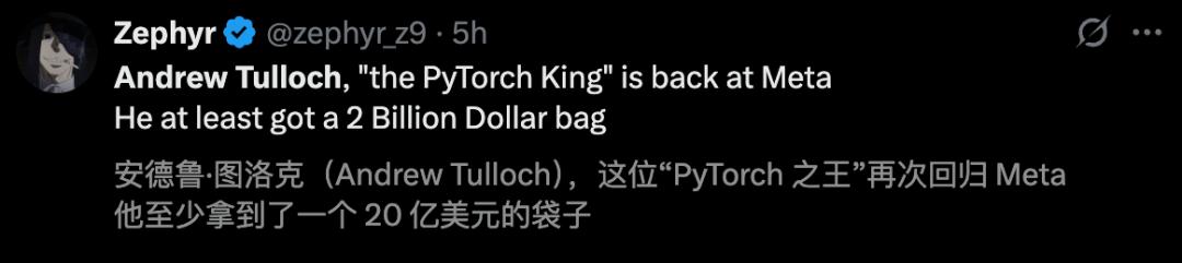 小扎又挖到AI明星了!爆料称,Thinking Machines联创、PyTorch之王Andrew Tulloch回归Meta,本人已在周五内部信官宣。他是曾拒绝15亿美元薪酬包,让全网轰动一时的AI大佬。