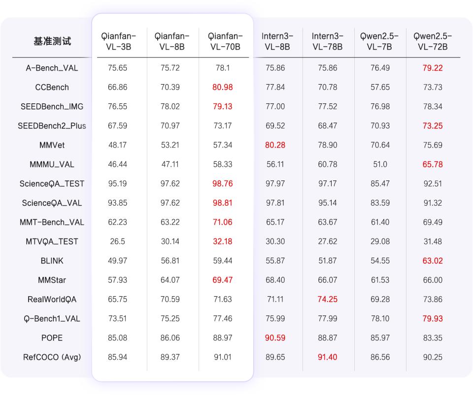 报道指出,“在通用能力基准测试中,Qianfan-VL系列模型(3B、8B、70B)展现出显著核心优势。从视觉理解到专业领域问答,模型性能随参数规模增大提升显著”。