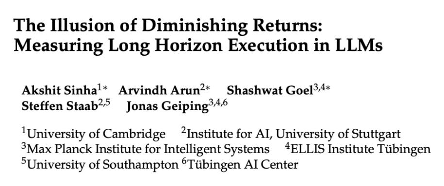 边际收益递减的错觉:衡量大语言模型的长时程任务执行能力https://arxiv.org/pdf/2509.09677