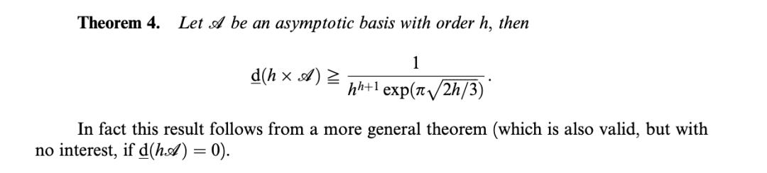 此外,埃尔德什和格雷厄姆还提出一个相关问题:如果能表示为A中r个元素之和的整数集合具有正的上密度,那么能表示为A中恰好r个不同元素之和的整数集合,是否也一定具有正的上密度?