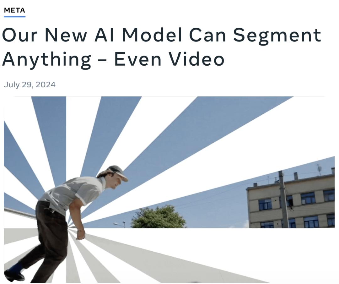 2024年7月,Meta推出SAM 2,将模型扩展到视频分割并显著提升性能。