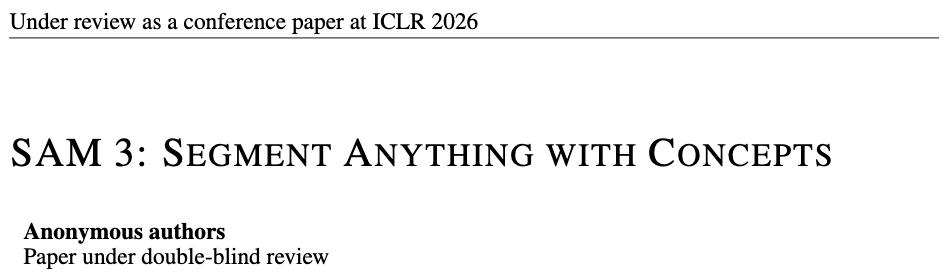 ICLR 2026会议盲审论文《SAM3:用概念分割一切》https://openreview.net/pdf?id=r35clVtGzw