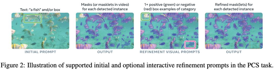 该功能被定义为可提示的概念分割(Promptable Concept Segmentation,PCS)。