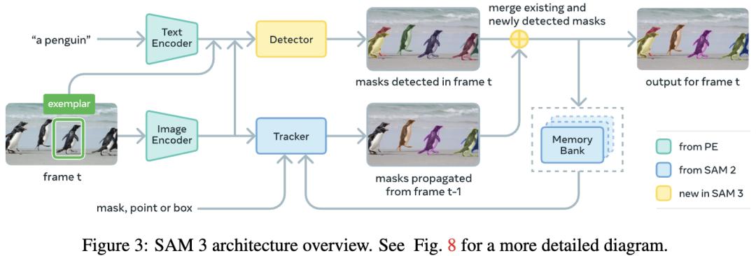 检测器和跟踪器分开运作,检测器只管发现目标,跟踪器才关注它们的身份,为了避免以上两种任务相互干扰,SAM 3引入了一个新的「存在性Token」,将识别与定位解耦。