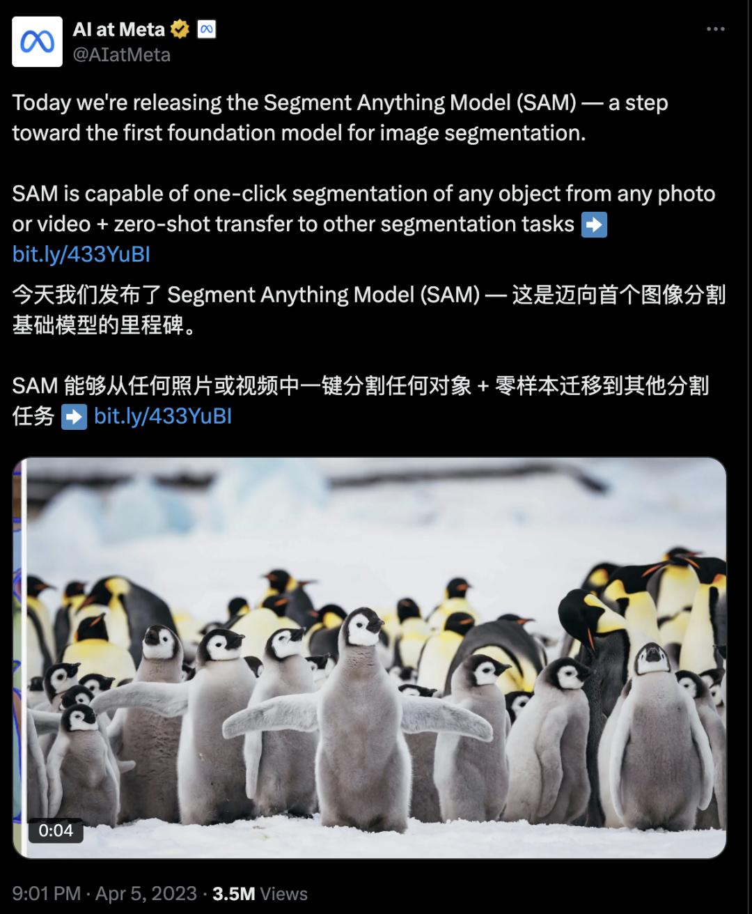 2023年4月,Meta AI发布了首个图像分割基础模型Segment Anything Model(SAM)。