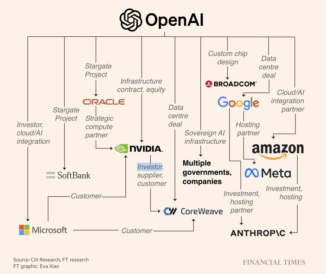 再加上,此前与云服务巨头甲骨文、CoreWeave签下的大单,万亿美元算力关系网已悄然形成。
