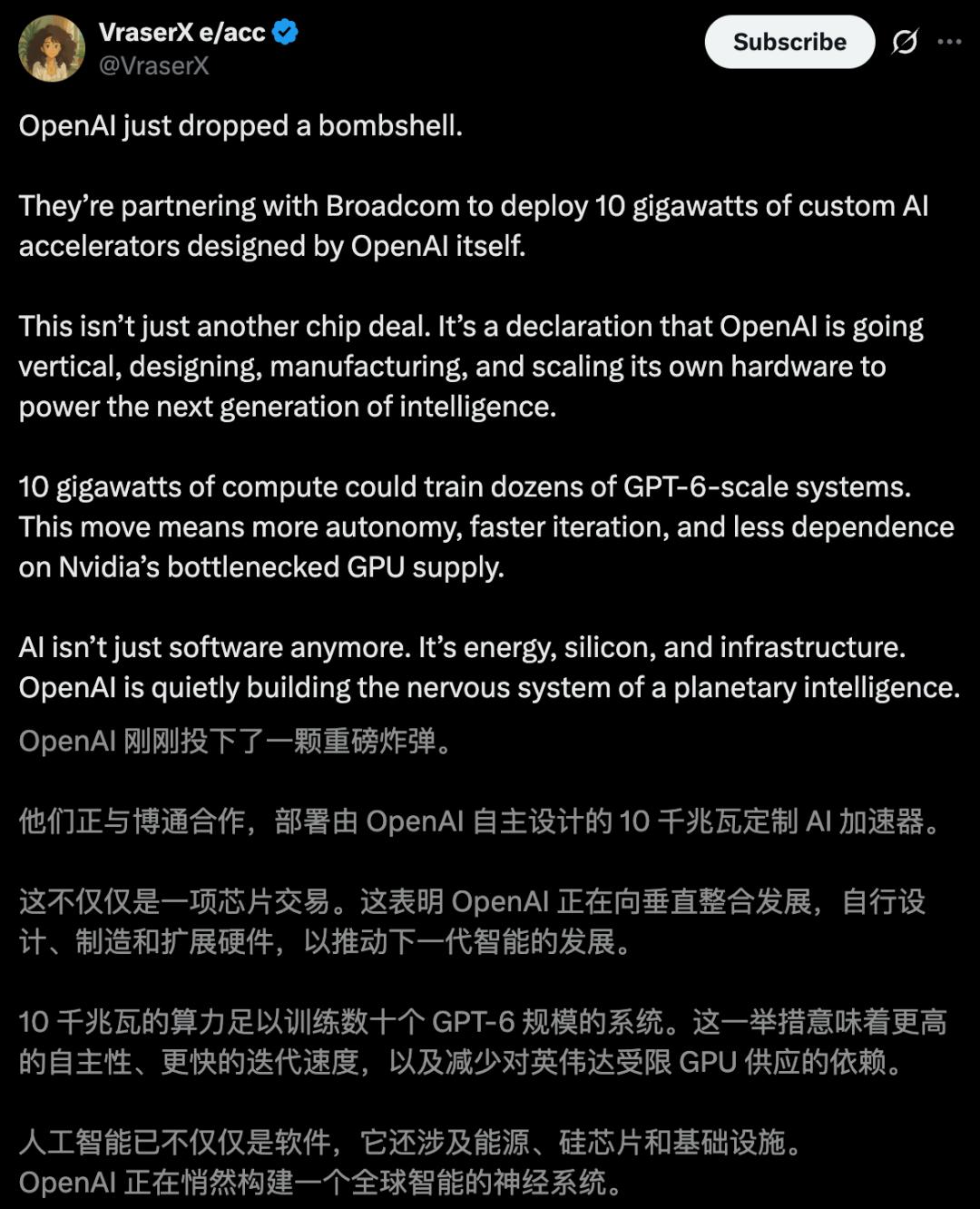 今天,OpenAI重磅官宣与博通合作,打造新一代AI定制加速器,部署规模达10GW。