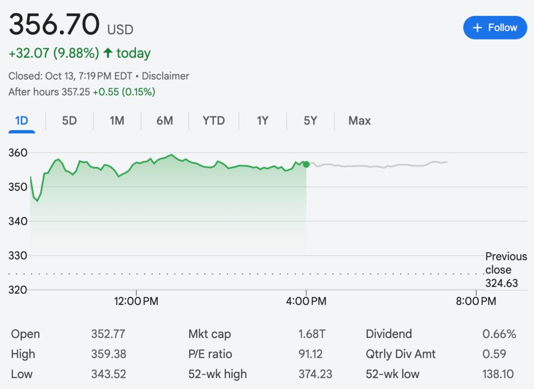 消息公布后,博通股价一度大涨近10%,市值达1.68万亿美元。