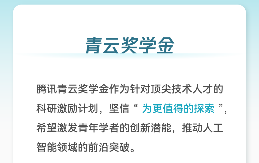 IT之家 10 月 14 日消息,今日腾讯首届「青云奖学金」全面启动,作为面向顶尖技术人才的科研激励计划,「青云奖学金」专门瞄准 AI 前沿的硕博同学设立,鼓励大家投身“更值得的探索”。