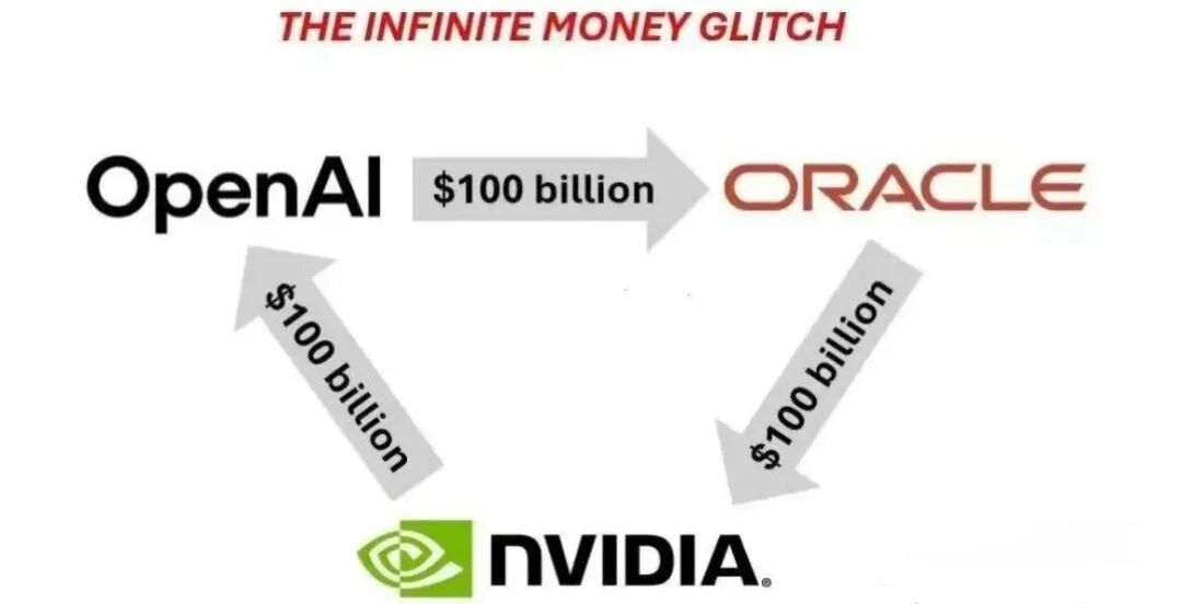 资金从英伟达流向OpenAI,再从OpenAI流向甲骨文,最终又从甲骨文流回英伟达,形成一个闭环。