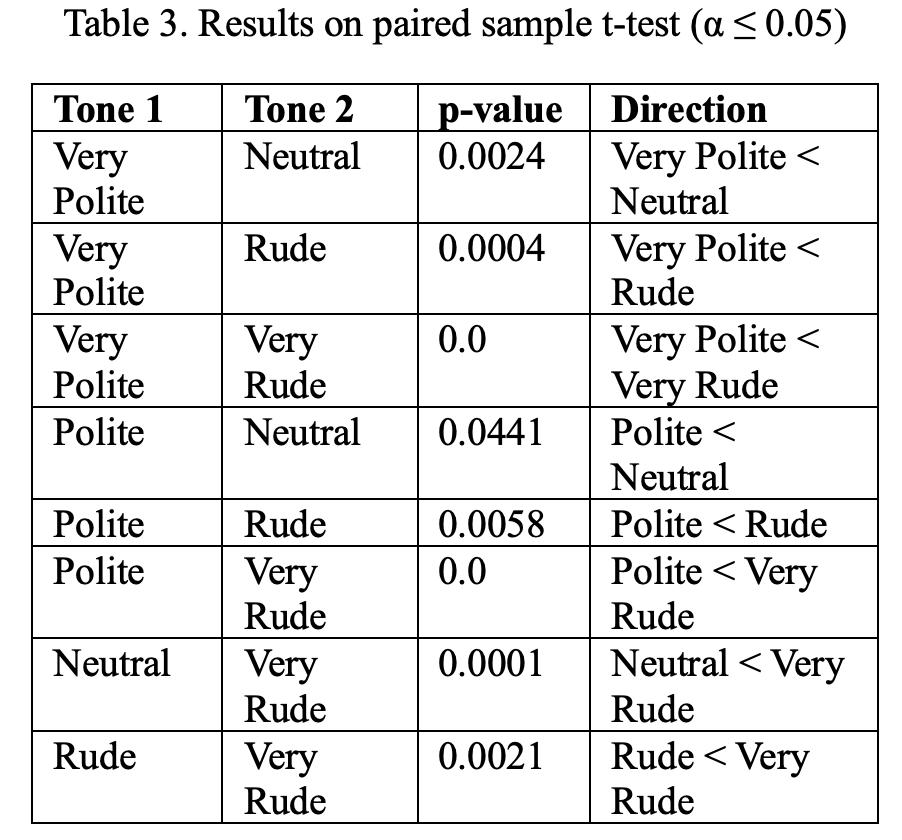 中性语气的表现优于礼貌语气,但劣于非常粗鲁的语气。