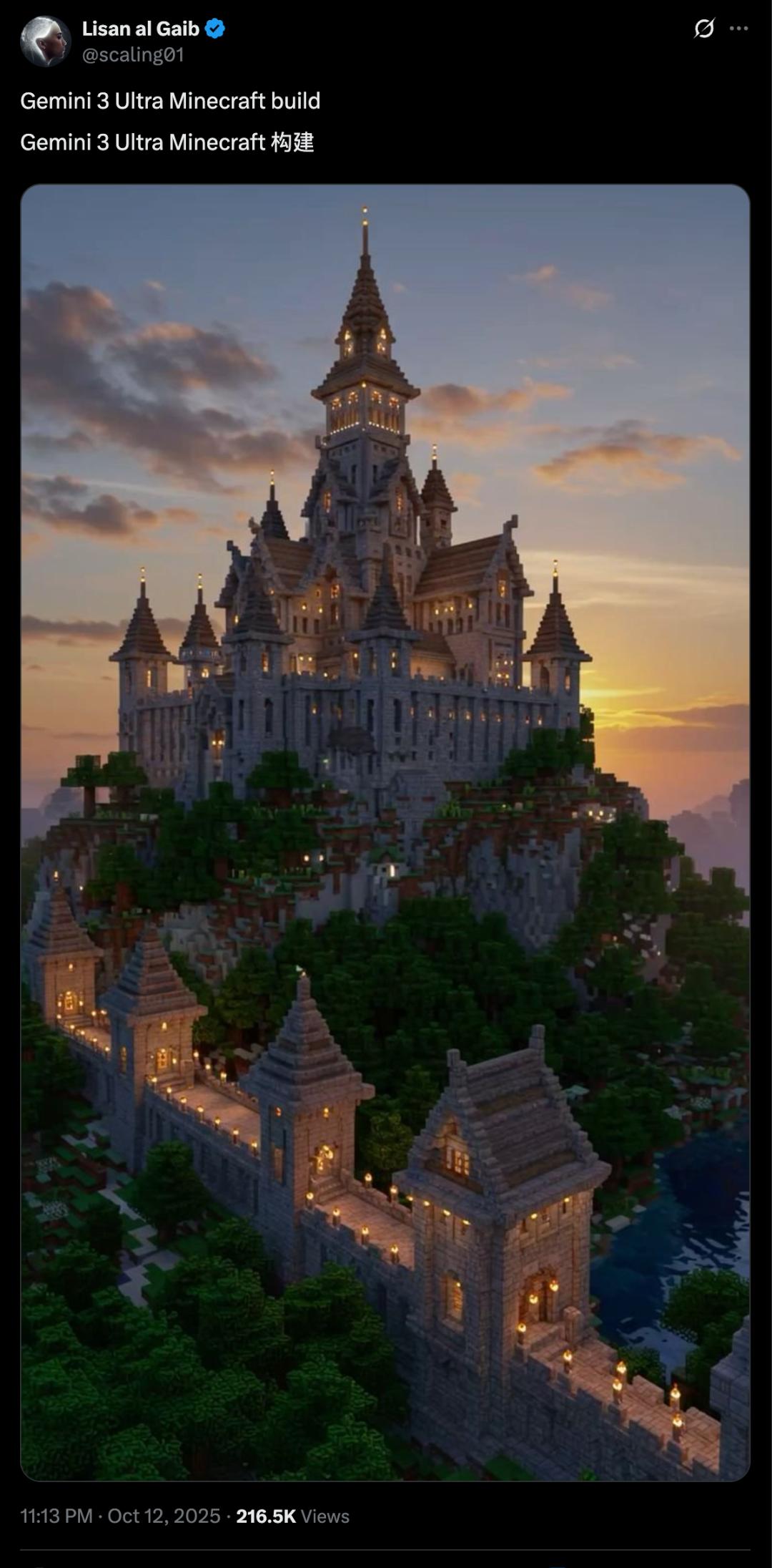 而关于 Gemini 3 能力如何,目前唯一来自官方的确认,也只有 Mikhail 发布的这条推文,他说 Demis 上周告诉他,Gemini 3 会让人印象深刻。
