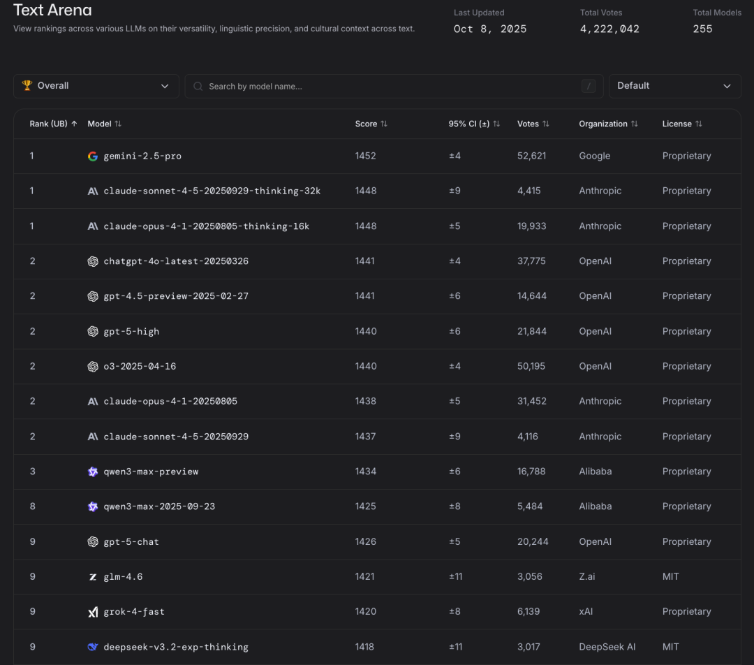更具体的情况,可以在 LMArena 公开榜单中窥见一二。
