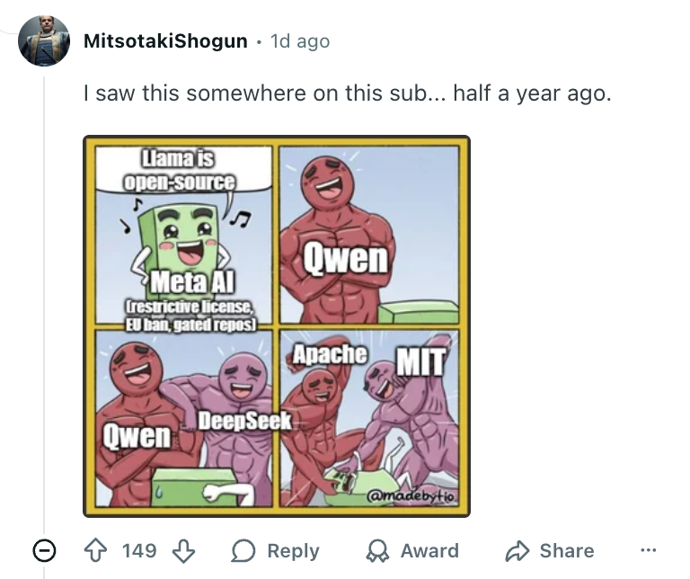 比如半年前 Llama 4 翻车时的梗图,就又被挖了出来: