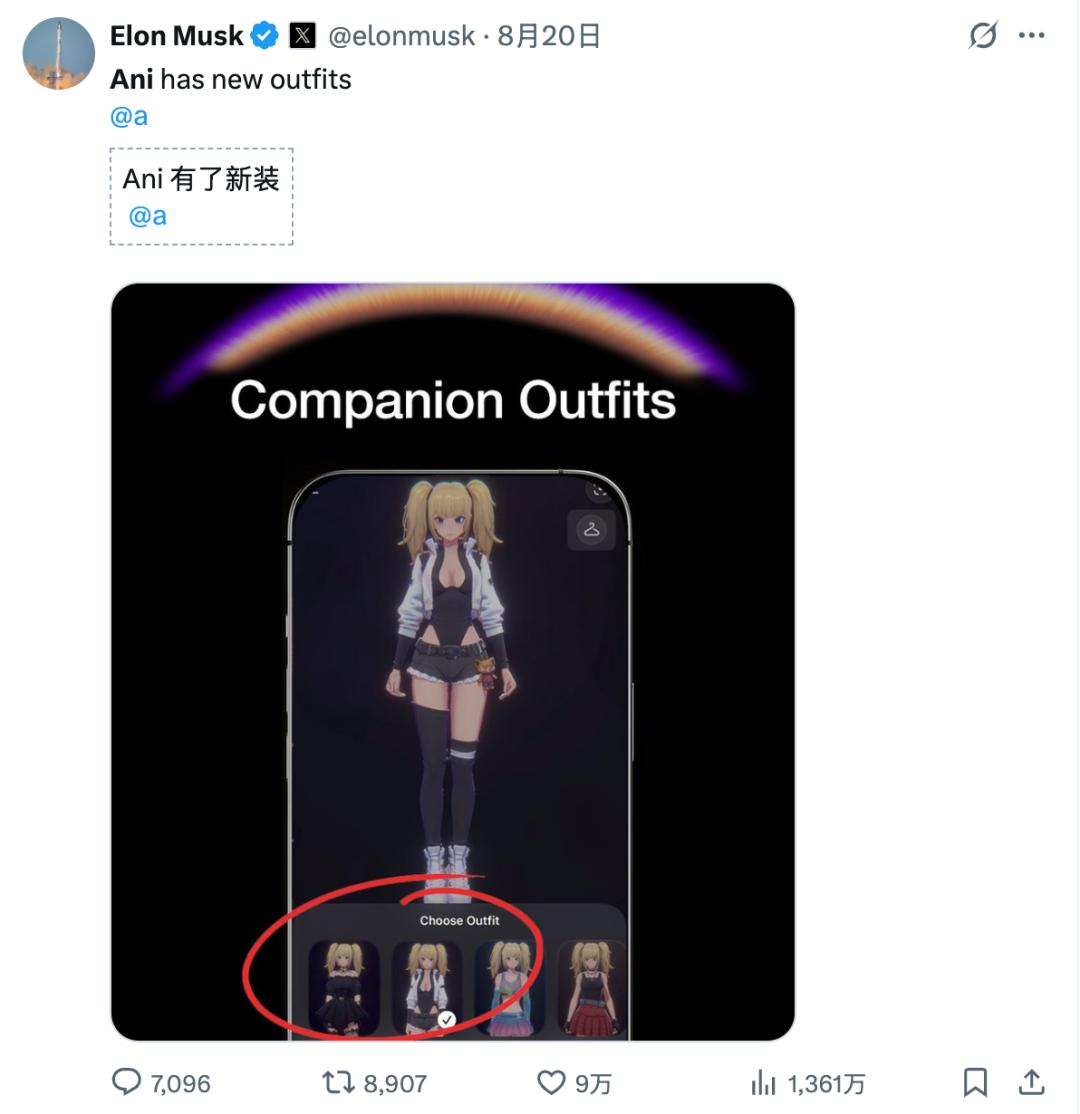 Grok是第一家推出AI虚拟伴侣、AI女友角色「Ani」的AI App!