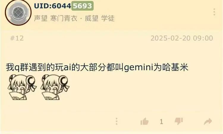 但语言有种奇妙的魔力,当“Gemini”被念成“哈基米”时,这个源于网络、充满宠溺感的猫咪梗,便不由分说地为这个AI披上了一层情感滤镜。很快,“芥末泥”、“小gem”之类的爱称也层出不穷。