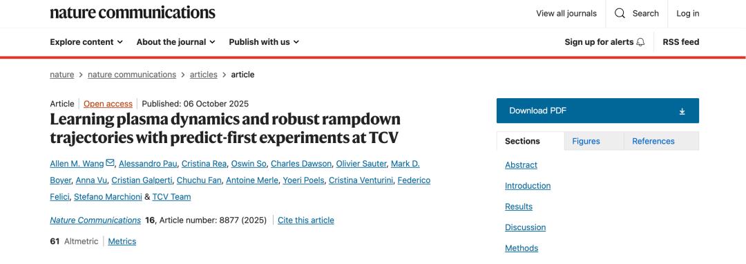 相关研究以「Learning plasma dynamics and robust rampdown trajectories with predict-first experiments at TCV」为题,发表于 Nature Communications。