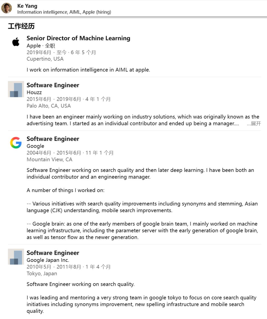 Ke Yang(杨克)是苹果负责AI搜索与问答系统的高管,几周前刚被任命为内部代号AKI(Answers, Knowledge and Information)团队负责人。