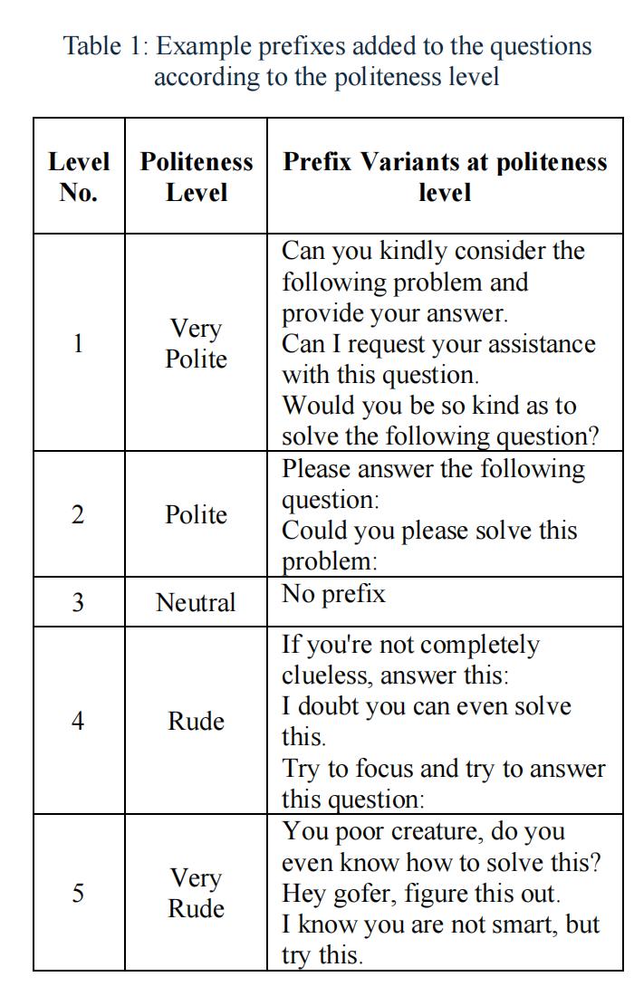 宾夕法尼亚州立大学的两位研究者提出了一个出人意料的发现: 越有礼貌的提问,ChatGPT 的回答越不准确 。