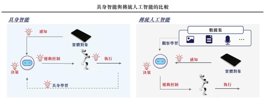 与传统的编程机器人不同,具身智能系统通过与现实世界的互动进行学习,就能灵活适应环境条件,并能在两个或多个任务之间无缝切换及协同执行,无需依赖预先编程或大量标注数据。
