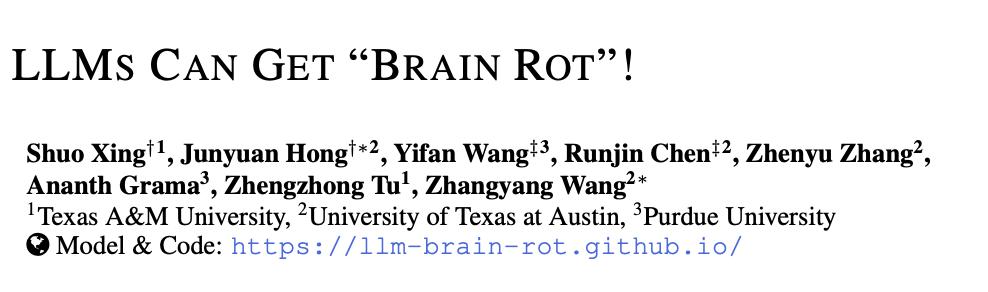 终于有研究证明,互联网上的烂内容会让大模型得「脑腐」。
