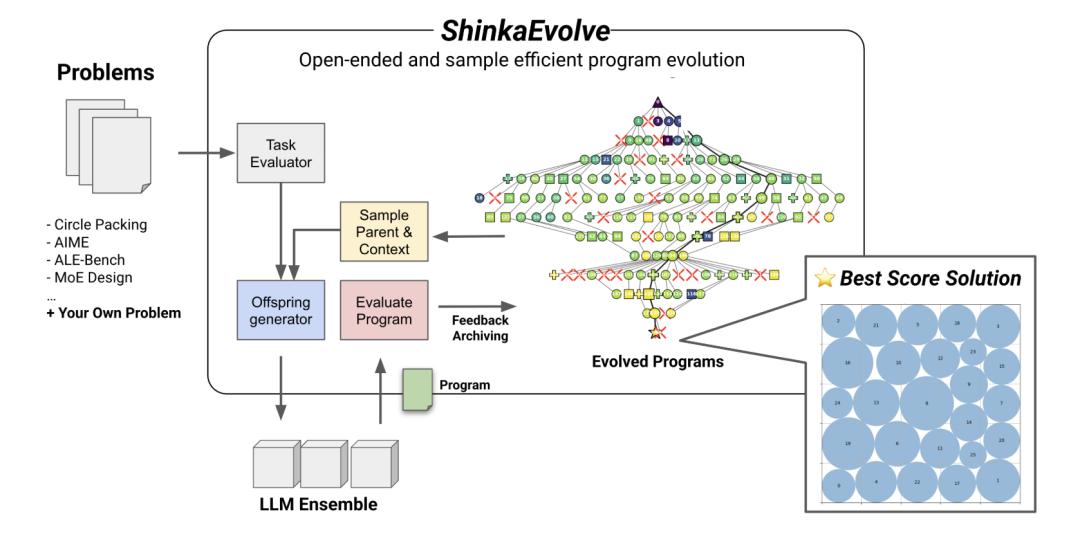 今年9月,Sakana AI开源了ShinkaEvolve,该框架将大模型与一种算法相结合,帮助其针对各种潜在问题提出解决方案,并缩小到最相近的问题。该公司声称,与Transformer架构相比,这种方法更高效,更能提出创造性的解决方案。