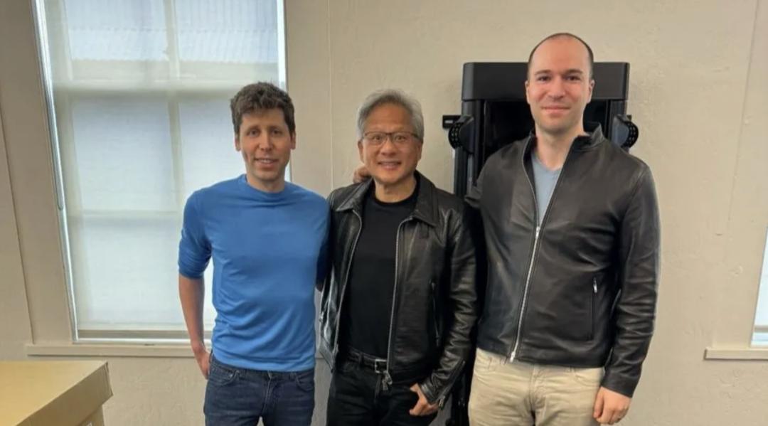 从左至右:OpenAI联合创始人兼CEO萨姆·阿尔特曼(Sam Altman)、英伟达创始人兼CEO黄仁勋、OpenAI联合创始人兼总裁格雷格·布罗克曼(Greg Brockman)(图源:X)