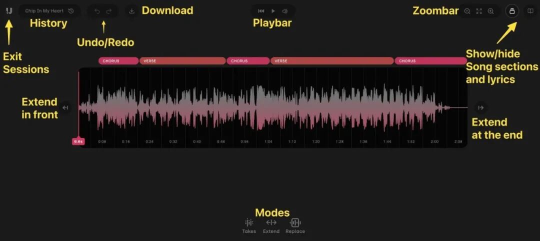 今年6月,Udio在Styles功能和Allegro v1.5模型更新推出后不久推出可视化编辑工具Sessions,该更新承诺在不影响质量的情况下获得更快的结果。创作者可以在其中移动、扩展或替换歌曲的不同部分,例如主歌、副歌或桥段。它通过自动从波形中识别这些部分来实现这一点,从而实现更流畅、更自然的编辑过程。