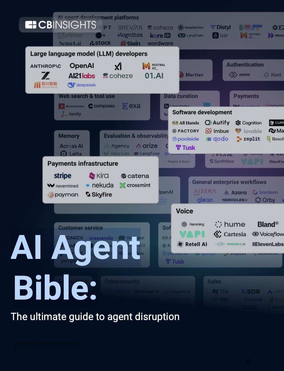 美国风投数据机构CB Insights最近发布了一份69页的重磅报告《AI Agent圣 经:颠覆性智能体终极指南》,全面讲述了AI Agent的生态图景。