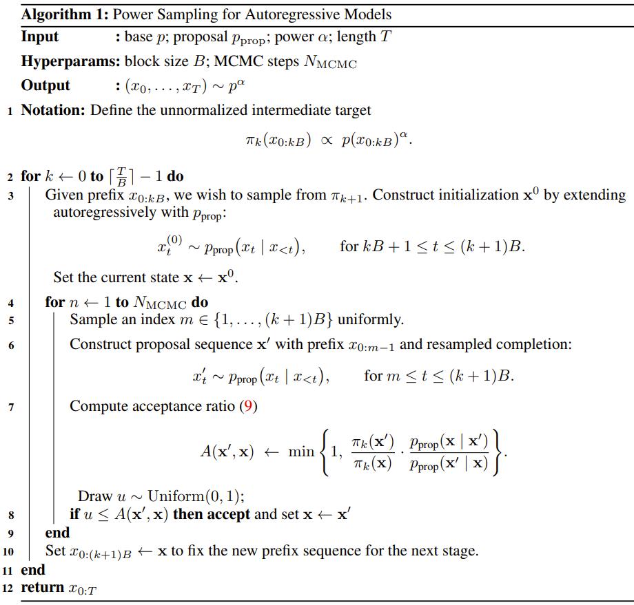 我们已经从理论上看到从 p^α 采样可以如何帮助提升底层 LLM 的推理能力。基于此,该团队构建了一个算法,以便能够准确从中采样。