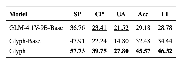 靠着这套组合拳,Glyph在高压缩的视觉上下文任务里依然能游刃有余。