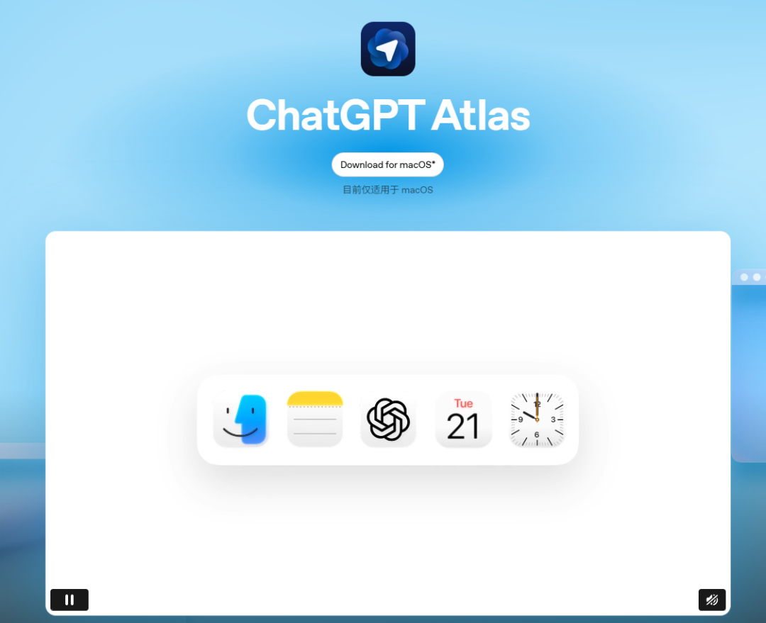 然后昨天,这帮人又冷不丁地,发了个 AI 浏览器,叫 ChatGPT Atlas。
