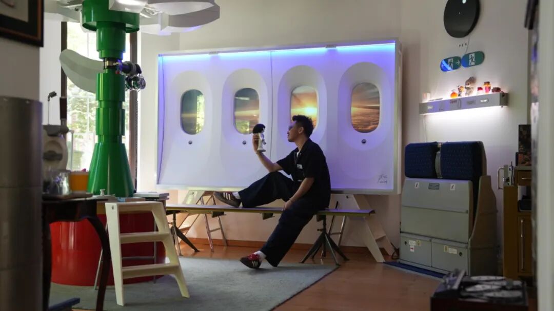 走进80后北京人Amazing Kimi的家,仿佛瞬间穿越进某个科幻电影中:19世纪火车站座椅与AI机器人共处,战斗机残骸被做成装饰画,波音飞机的窗户和座椅被搬进起居室……这里没有中庸,只有极致复古与极致先锋的碰撞。