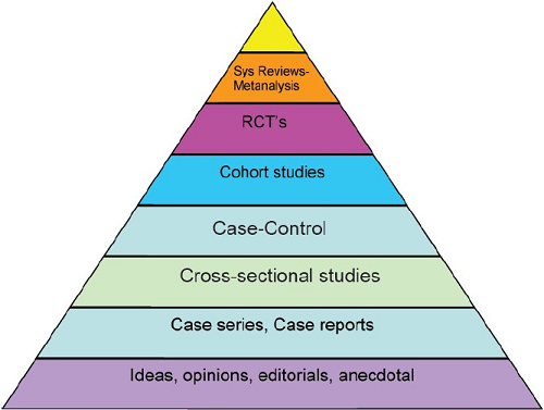 在这一框架下,医学知识被划分为从低到高不同可信度的层级,最可靠的研究位于金字塔顶端,如系统综述、Meta分析或随机对照试验(RCT)。这种分层机制通过关注最强的证据,以最大限度地减少偏倚,并增加做出最佳临床决策的可能性。