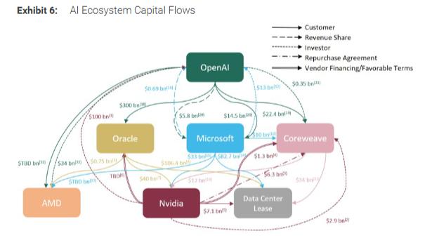 :AI生态系统内部的参与者关系日益交织,形成了“铁索连环”,客户与供应商之间的角色相互重叠。