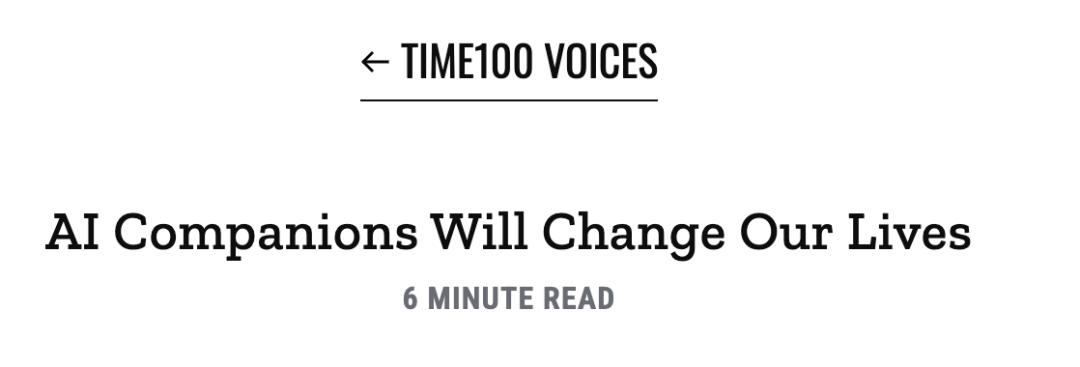几个月前,Suleyman在《时代》杂志上写了一篇关于AI伴侣的评论文章, 谈到AI伴侣如何改变我们的生活。
