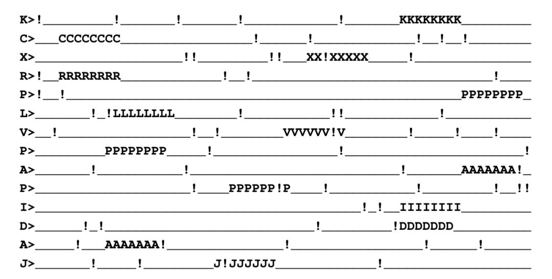 合成序列具有固定长度,包含一个由随机字母重复8次构成、位于随机位置的「目标」,以及由感叹号组成的独立同分布噪声,还有一个提示目标字母的提示语。