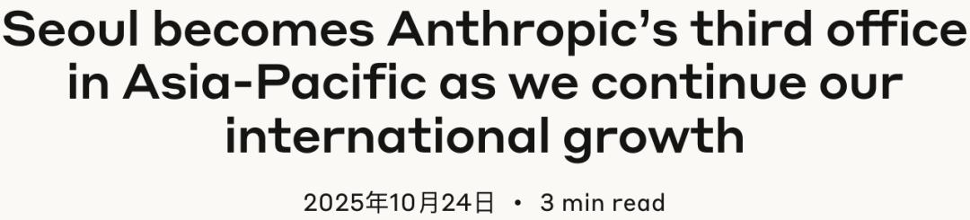 几乎在OpenAI推出日韩经济蓝图的同时,Anthropic也宣布2026年初要在首尔成立办公室,以延续其在东京与班加罗尔后的亚太扩张。