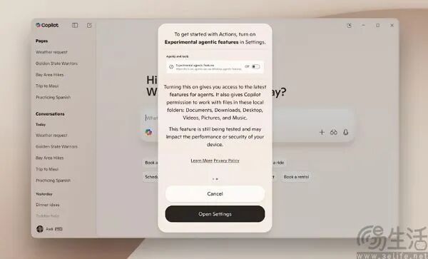 在微软的介绍中,Windows 11成为Agentic OS的第一步是让“让手指休息一下”,为此他们推出了语音唤醒指令“Hey Copilot”。使得用户无需再依赖传统的键盘和鼠标进行手动操作,只用喊出“Hey Copilot”,即可唤醒Windows系统中的Copilot应用,并用语音召唤Copilot来完成分析屏幕内容、回答问题、提供建议等操作。