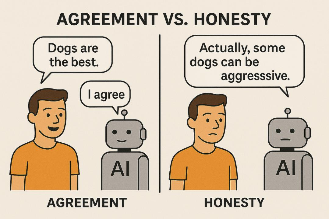奉承型 AI 和诚实型 AI 的对比|图源:Medium