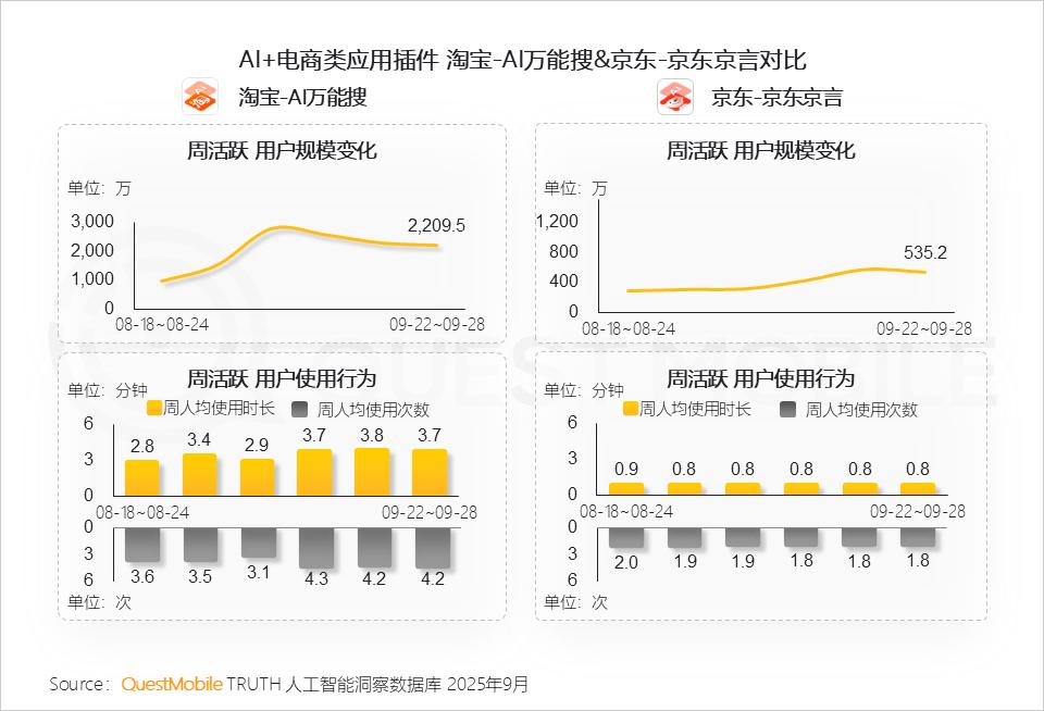 QuestMobile数据显示,小宝AI助手、京东京言Q3复合增长率分别达52.9%和34.5%,排名分别提升9个席位和4个席位。