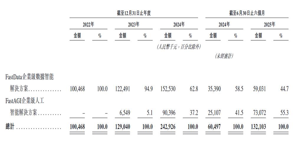 这也意味着,滴普科技目前的主要营收来源,已经从FastData企业级数据智能解决方案转变为FastAGI企业级AI解决方案。