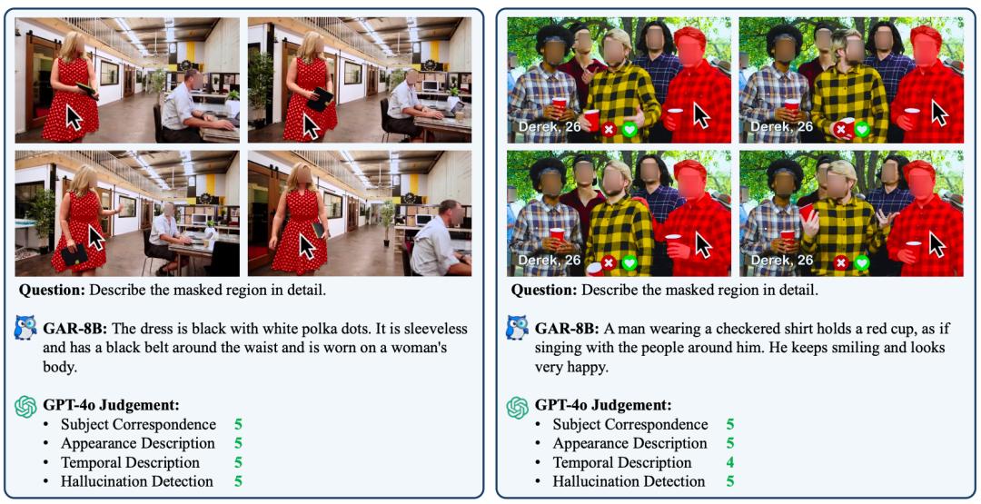 同时,在视频理解任务中,GAR能够精准地识别视频中的物体、人物与动作,进行语义层次的深度分析。