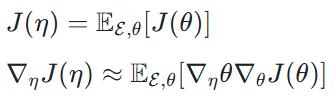 是期望折扣奖励总和,即典型的 RL 目标。元参数 η 遵循上述方程,使用梯度上升进行优化。
